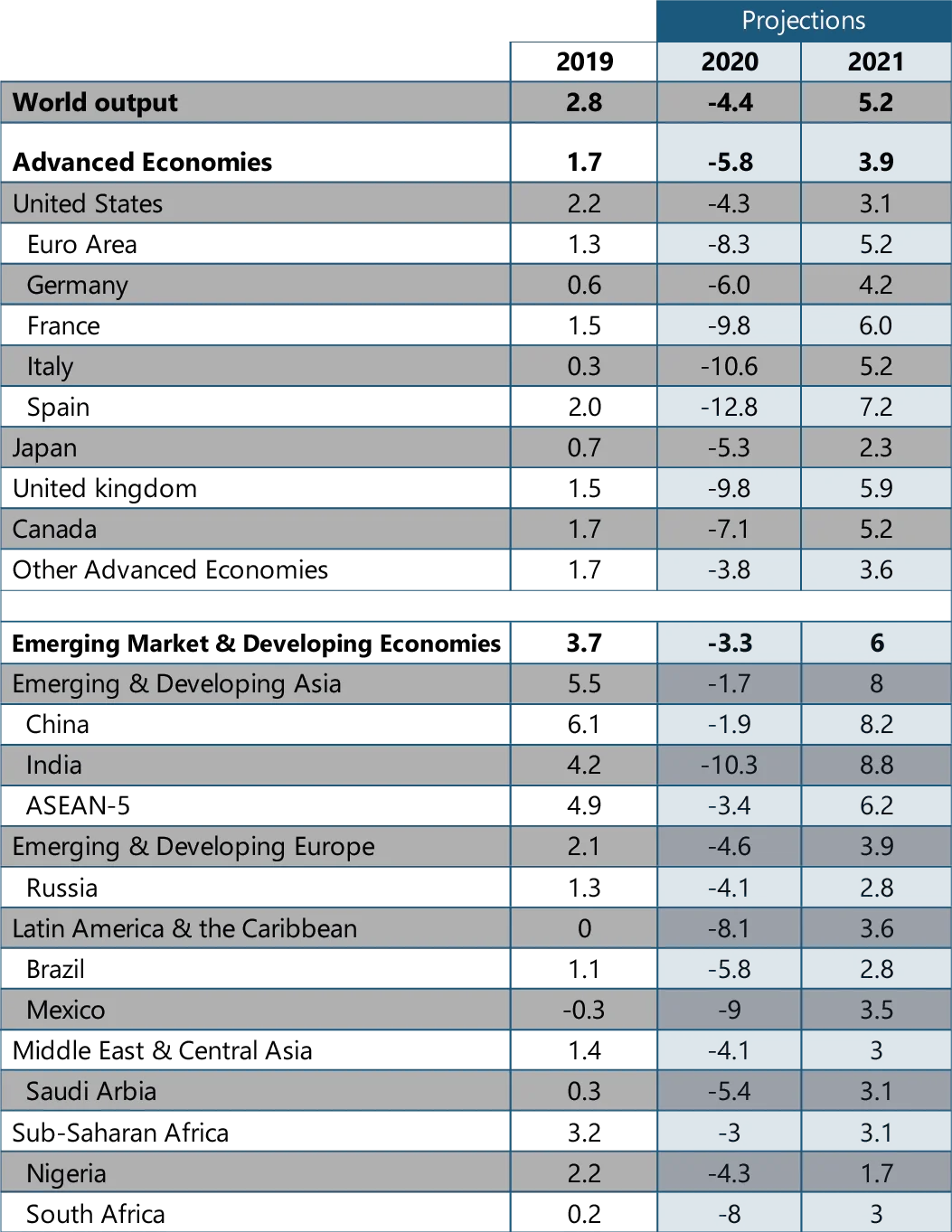 Further estimates by IMF shows advanced economies are projected to contract by 5.8 percent where emerging market and developing economies will show a GDP growth of -3.3 percent in 2020. In 2021, Global Economy is expected to rebound and grow at 5.2 percent followed by relative slow growth in 2022.