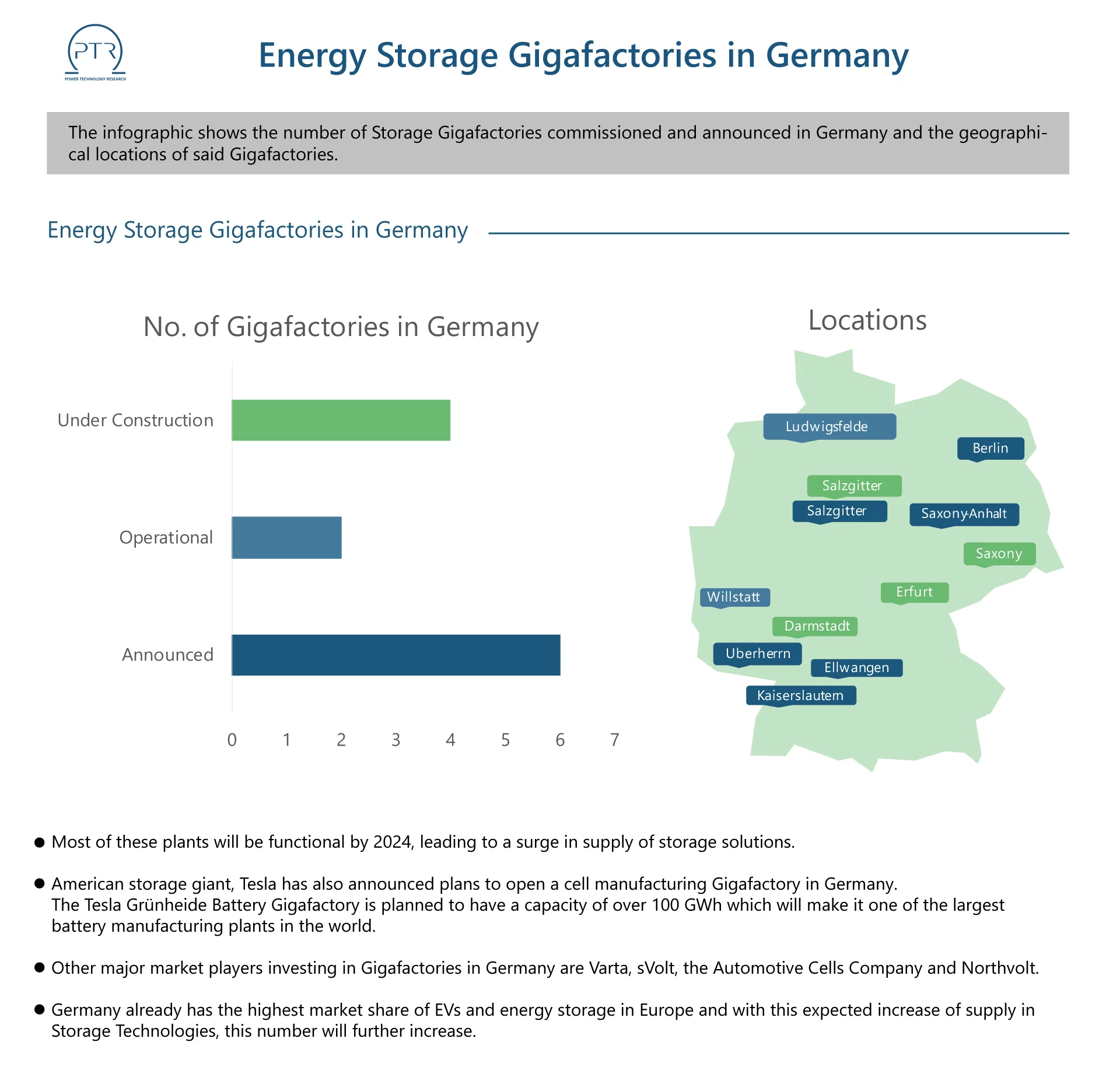 In recent years, the world has started to look at energy storage as a viable solution to the challenges of green energy. Markets such as Photovoltaics and Wind power are key technologies in the quest to shift to clean energy completely. The energy generated by both of these technologies is intermittent, making energy storage crucial for the global clean energy transition. To cater to the increasing demand of storage, many companies have invested in Gigafactories that have the manufacturing capacity greater than 1 GWh. The European market, especially Germany, was one of the first to respond to this need. Establishing and announcing many projects to adjust to the increase in demand.