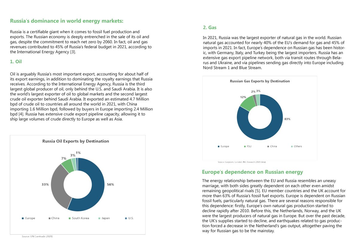 The global spotlight is on the Russia-Ukraine crisis, which has been responsible for wreaking havoc on international fossil fuel markets. Western powers responded to the crisis by proposing a number of sanctions on Russia, including ones on its fossil fuel exports. Given the fact that Russia is a key player in the global oil and gas markets, the crisis, and subsequent sanctions spell potential disaster for international energy security. Europe is an especially vulnerable region, given its considerable reliance on Russia to satisfy its fossil fuel needs. This paper explores the possible effects of the sanctions that have been placed on Russian energy by the West and discusses whether Europe will be able to liberate itself of its historic dependency on Russian oil and gas.